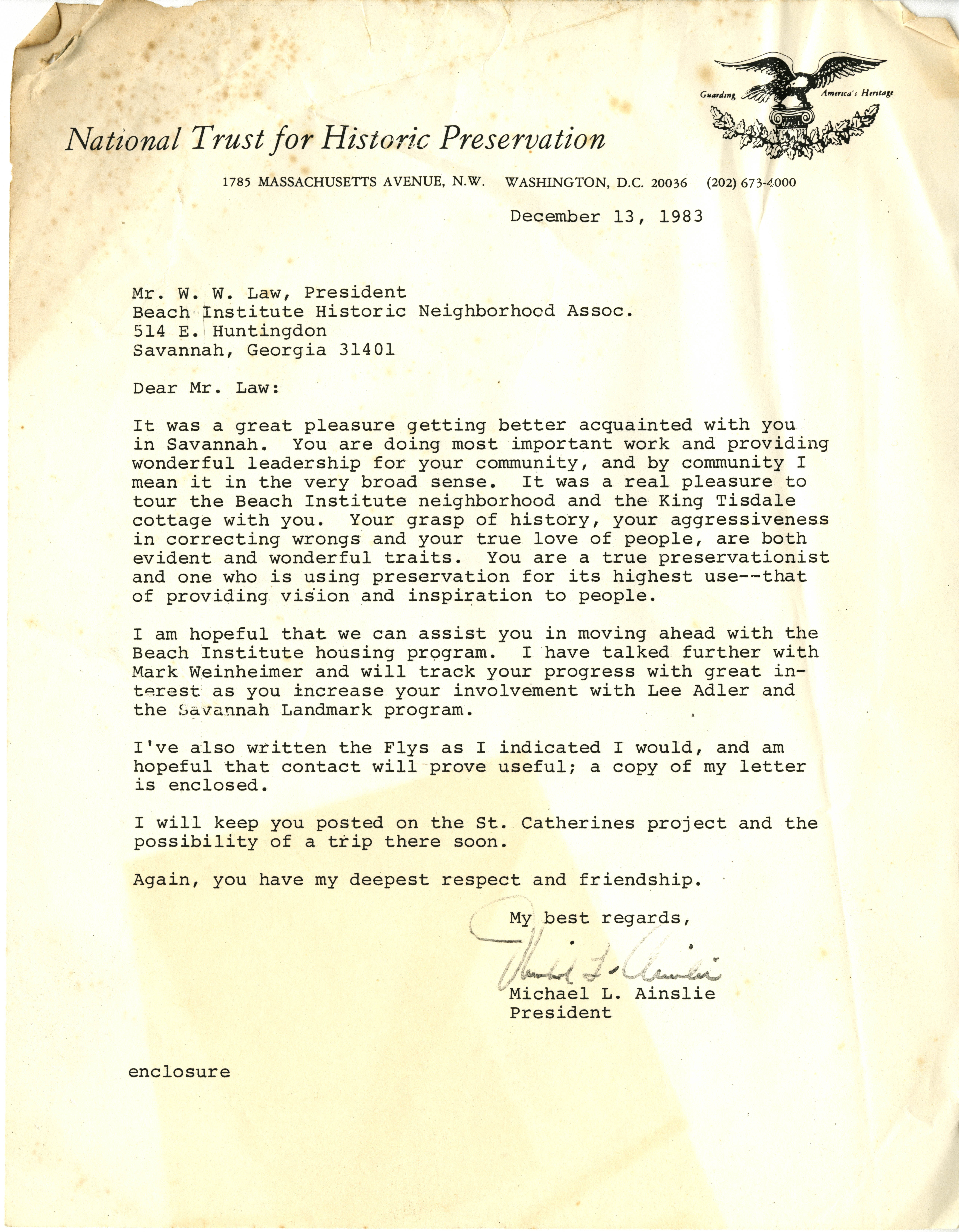 National Trust for Historic Preservation Letter - W. W. Law Working Files