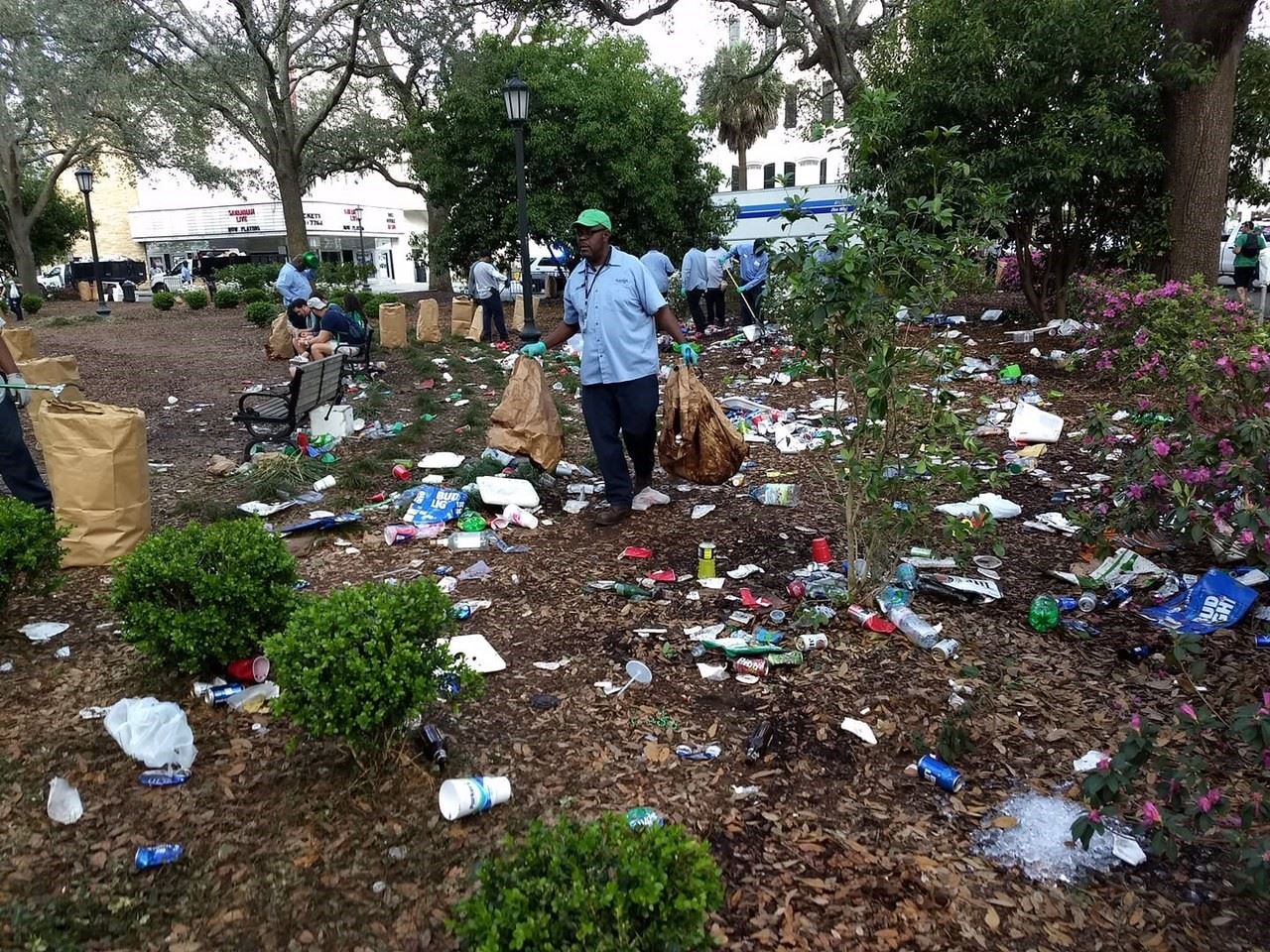 Sanitation crews finished removing trash from the parade route and festival area at 8:30 a.m. on Sunday. Chippewa Square was again filled with litter after the parade. The City closed the square to the public at 2 p.m. on Saturday to clean up all the debris.