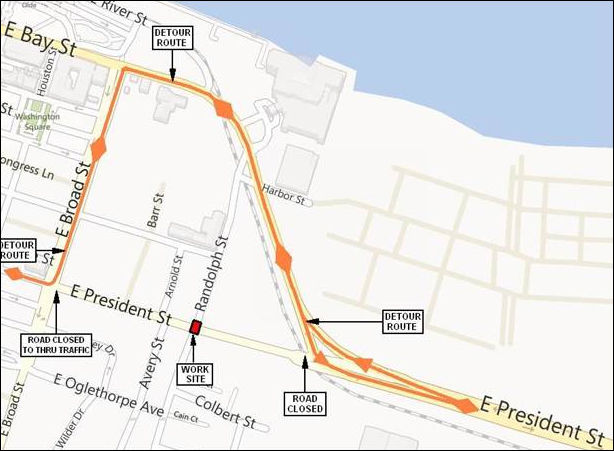 Through traffic on President Street heading to and from East Broad Street will be detoured to Bay Street during the closure (view map). Motorists should expect delays during peak travel times, and are advised to seek alternative routes during the construction period.